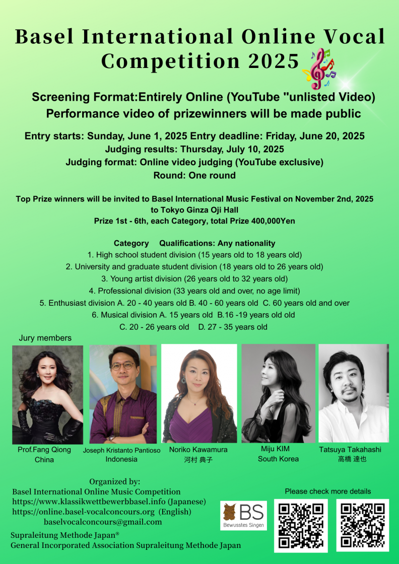 ・All media, including internet, newspapers, magazines, etc., related to the competition will belong to the 5th Basel International Vocal Competition.